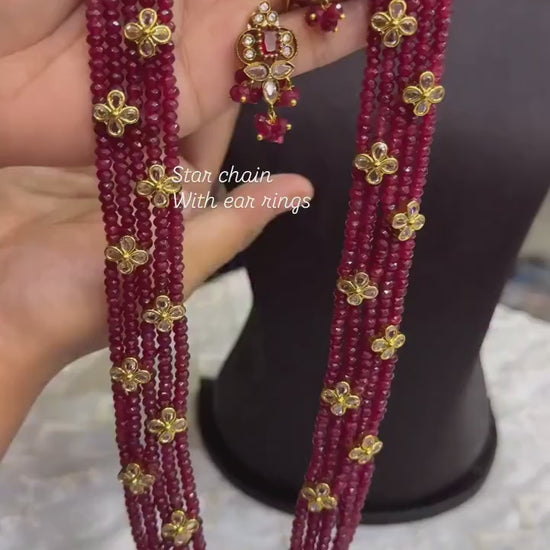 Elevate your jewelry collection with this stunning Beautiful Beads Star Set, a captivating ensemble that combines intricate craftsmanship with timeless elegance. Featuring radiant red beads arranged in a mesmerizing star design, this set includes matching earrings and a luxurious multi-layer chain that adds dimension and sophistication to any outfit. Perfect for special occasions or everyday glamour, the layered chain design creates a striking visual impact while the coordinated beads and earrings ensure a polished, cohesive look. Whether you're dressing up for celebrations or seeking to enhance your personal style, this versatile set delivers the perfect balance of artistry and wearability.