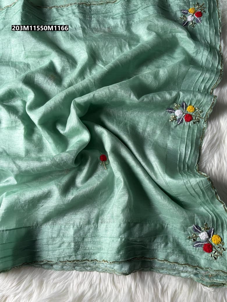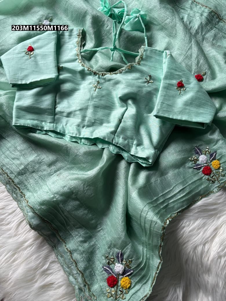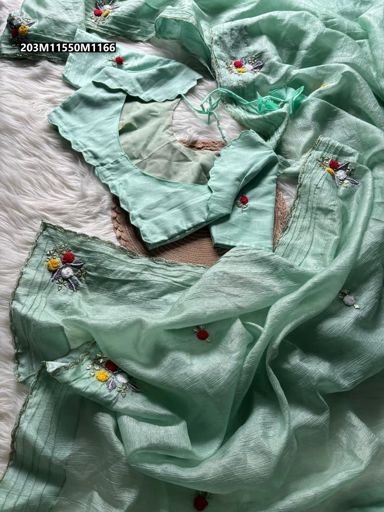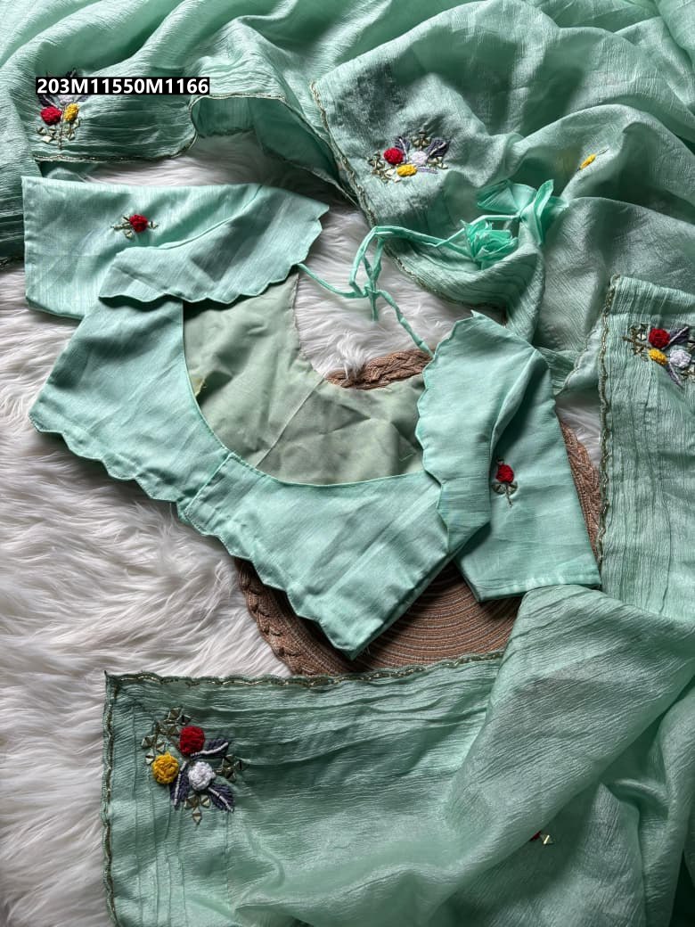 Embrace timeless elegance with the Candy Crush Handwork Saree, a masterpiece that seamlessly blends tradition with contemporary style. This stunning saree showcases meticulous artisanal craftsmanship featuring wool thread embroidery, shimmering mirrors, and intricate beadwork adorning the Bentex border and pallu. The cutdana detailing and delicate cutwork border elevate its luxurious appeal, while the coordinating heavy blouse with matching handwork ensures you're perfectly styled for any celebration. Ideal for festive occasions and special gatherings, this saree is designed for those who appreciate fine craftsmanship and wish to make a memorable impression. A true investment in elegance that transcends seasons.