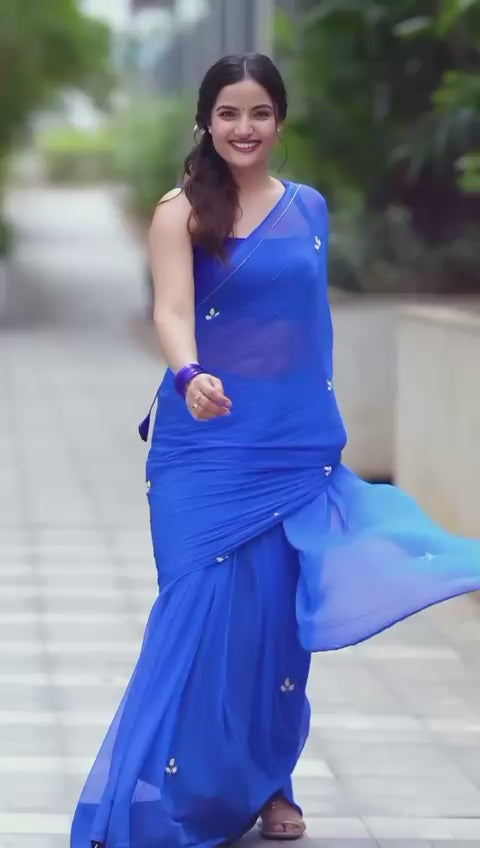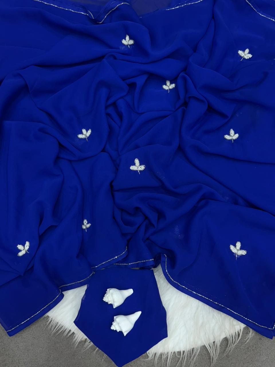SOFT GEORGETTE DINNER SAREE WITH HANDWORK CUT DANA LEAF WITH SILVER CUT DANA HANDWORK LINE BODERĀ