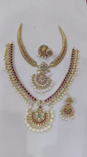 Elevate your ethnic ensemble with this stunning Kemp and Kada Necklace Combo—a perfect fusion of traditional craftsmanship and contemporary elegance. The vibrant kemp stones catch light beautifully, while the intricately designed kada adds a bold statement to any occasion. Whether you're dressing for a festival, wedding, or special celebration, this versatile pairing brings authentic charm and sophistication to your look. Crafted with attention to detail, these pieces work harmoniously together or separately, giving you endless styling possibilities. Transform your jewelry collection with timeless pieces that celebrate cultural heritage and personal style.