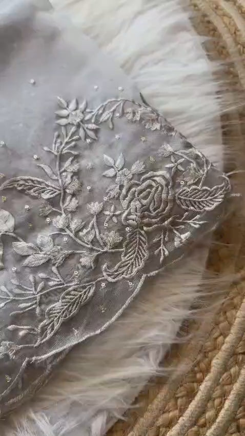 Discover timeless elegance with the Moon Organza Saree, where ethereal fabric meets exquisite craftsmanship. This stunning piece features delicate floral embroidery that captures light beautifully, creating an enchanting shimmer perfect for any occasion. Whether you're attending a daytime gathering or an evening celebration, this saree effortlessly transitions from casual sophistication to formal grace. The lightweight organza drapes gracefully, flattering your silhouette while allowing comfortable movement throughout the day. Embrace your inner radiance and make a lasting impression with this versatile wardrobe essential that celebrates your unique style.