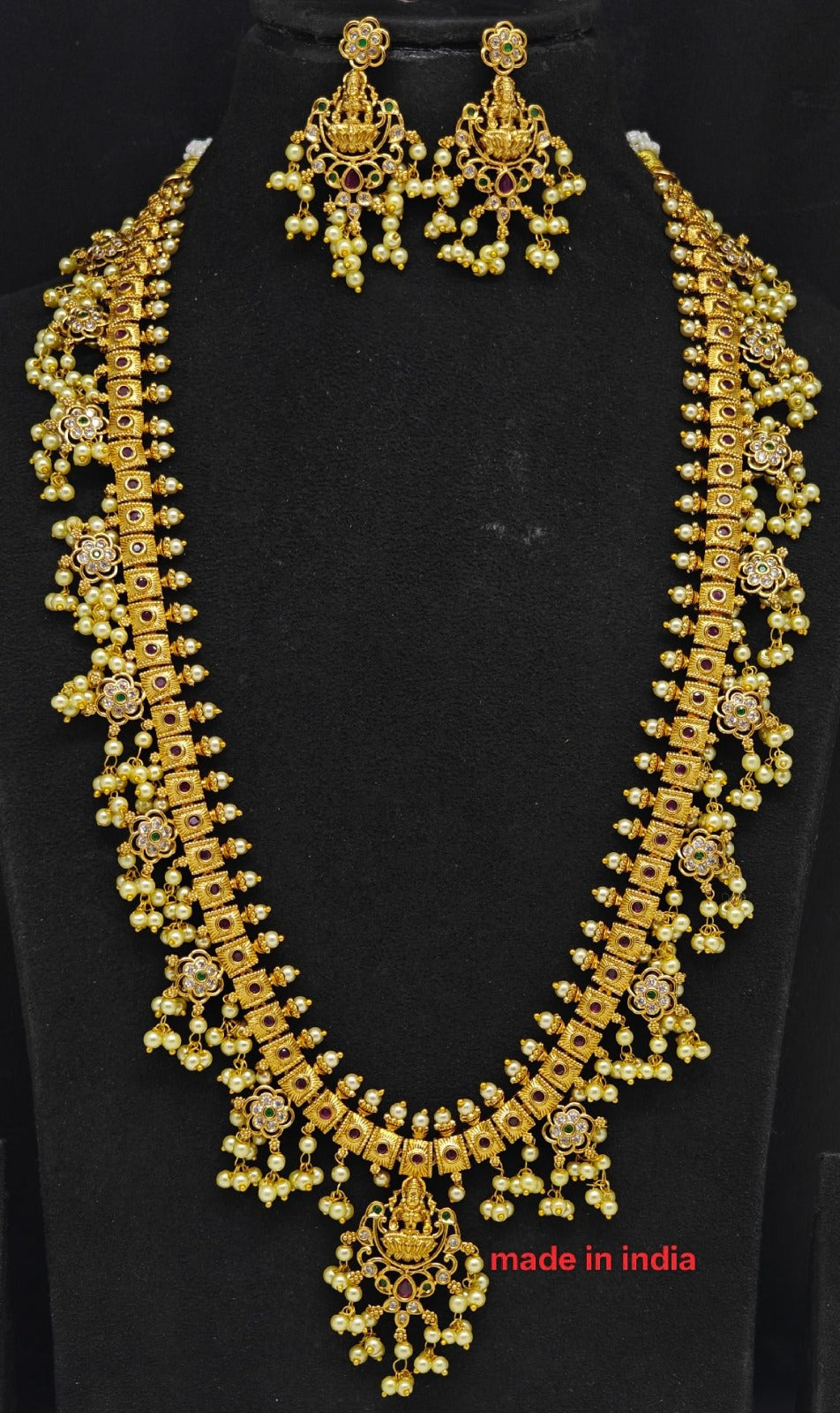Elevate your traditional elegance with this exquisite Nakshi ButtaPusalu Haram, a timeless piece that celebrates authentic craftsmanship. Featuring intricate buttapusalu work adorned with delicate nakshi detailing, this haram showcases the finest artisanal techniques passed down through generations. The ornate design catches light beautifully, making it perfect for weddings, festivals, and special occasions. Each piece reflects meticulous handiwork and premium quality, ensuring you stand out with grace and sophistication. A must-have addition to your traditional jewelry collection that complements both classic and contemporary ethnic wear.