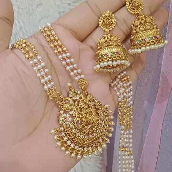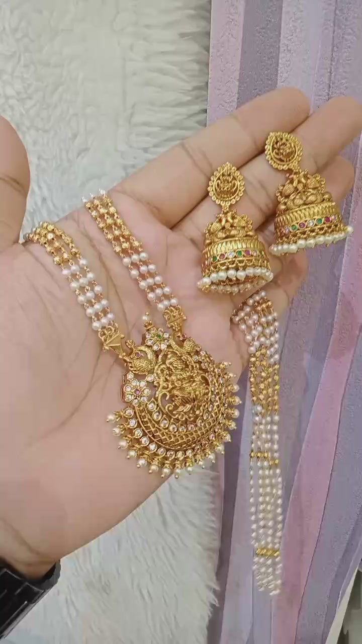 Pearl-Gold Nakshi Locket Haram