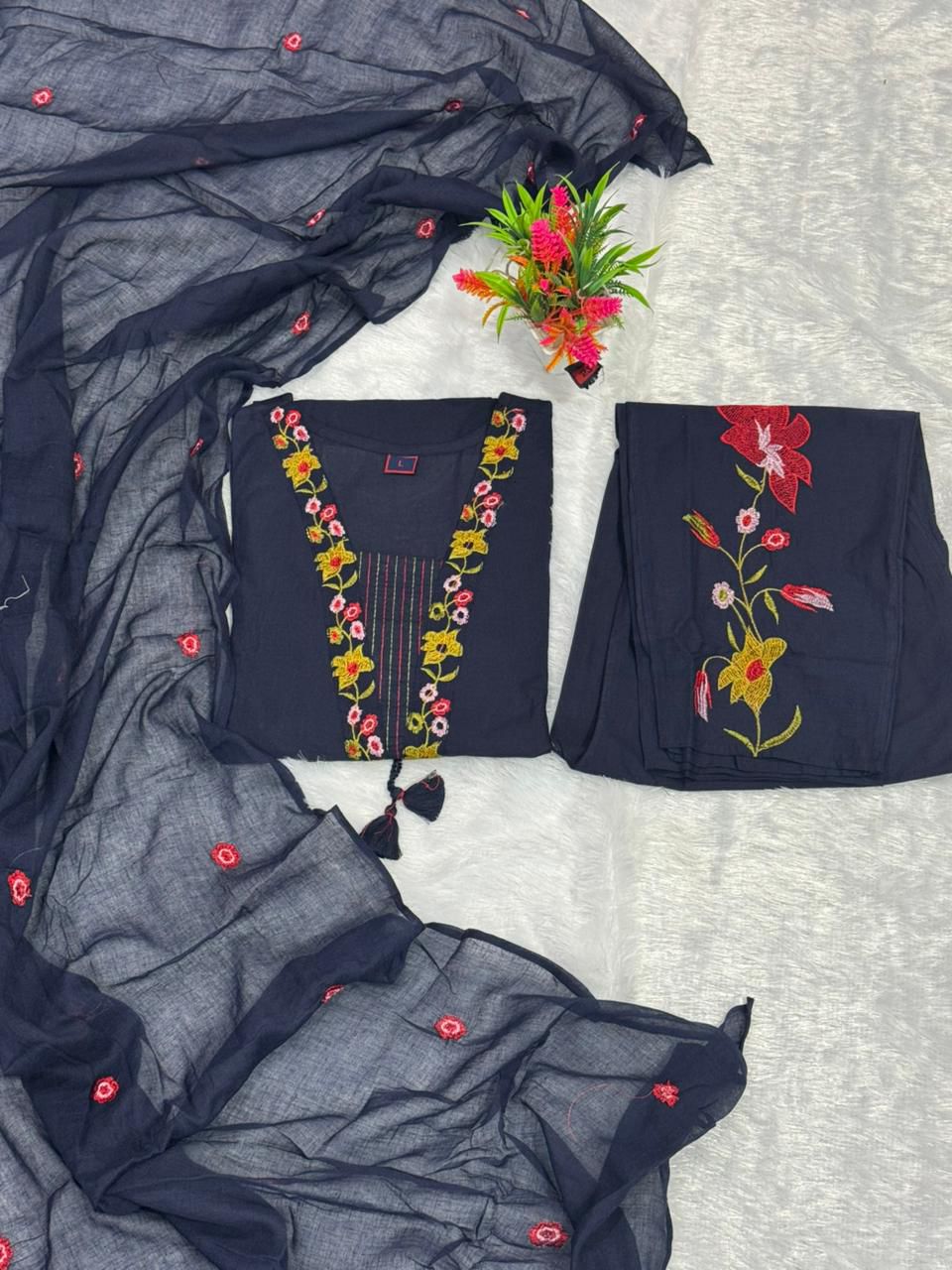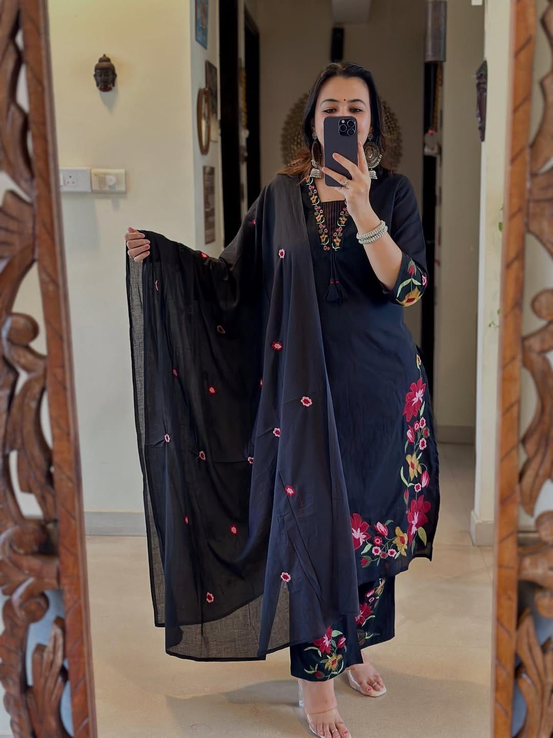 Elevate your festive wardrobe with this Pure Mul Cotton Kurthi Set, featuring exquisite heavy embroidery that adds a touch of elegance. Crafted from pure cotton mal fabric, it ensures comfort and breathability throughout the day. The set includes a beautifully embroidered top, matching palazzo, and a coordinating dupatta, perfect for traditional occasions and family gatherings. Available in sizes M to XXXL, this ready-to-wear ensemble blends timeless style with effortless sophistication. Embrace tradition with a modern twist and make every celebration memorable.