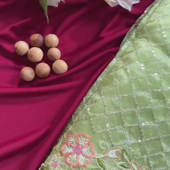 Elevate your ethnic wardrobe with this exquisite pure organza silk saree, a masterpiece of traditional craftsmanship. Adorned with intricate viscose thread embroidery and shimmering sequins in an enchanting floral design that cascades across the entire body, this saree radiates timeless elegance. The lightweight organza fabric drapes beautifully, offering comfort without compromising on sophistication. Paired with an unstitched Banglori silk blouse in classic plain design, you have the freedom to customize your look. Perfect for weddings, festivals, and special occasions, this saree transforms you into a vision of grace and refined beauty.