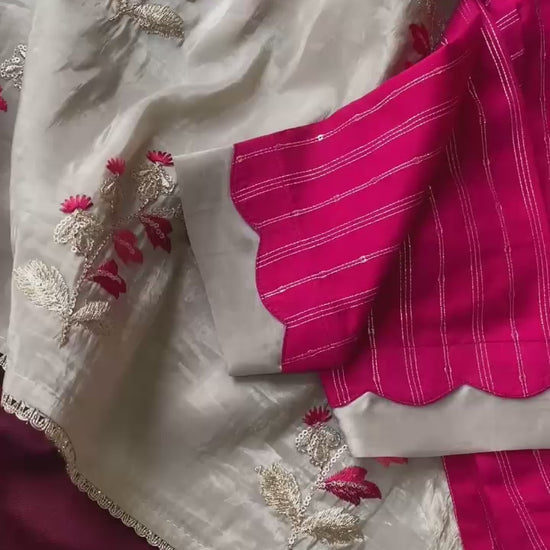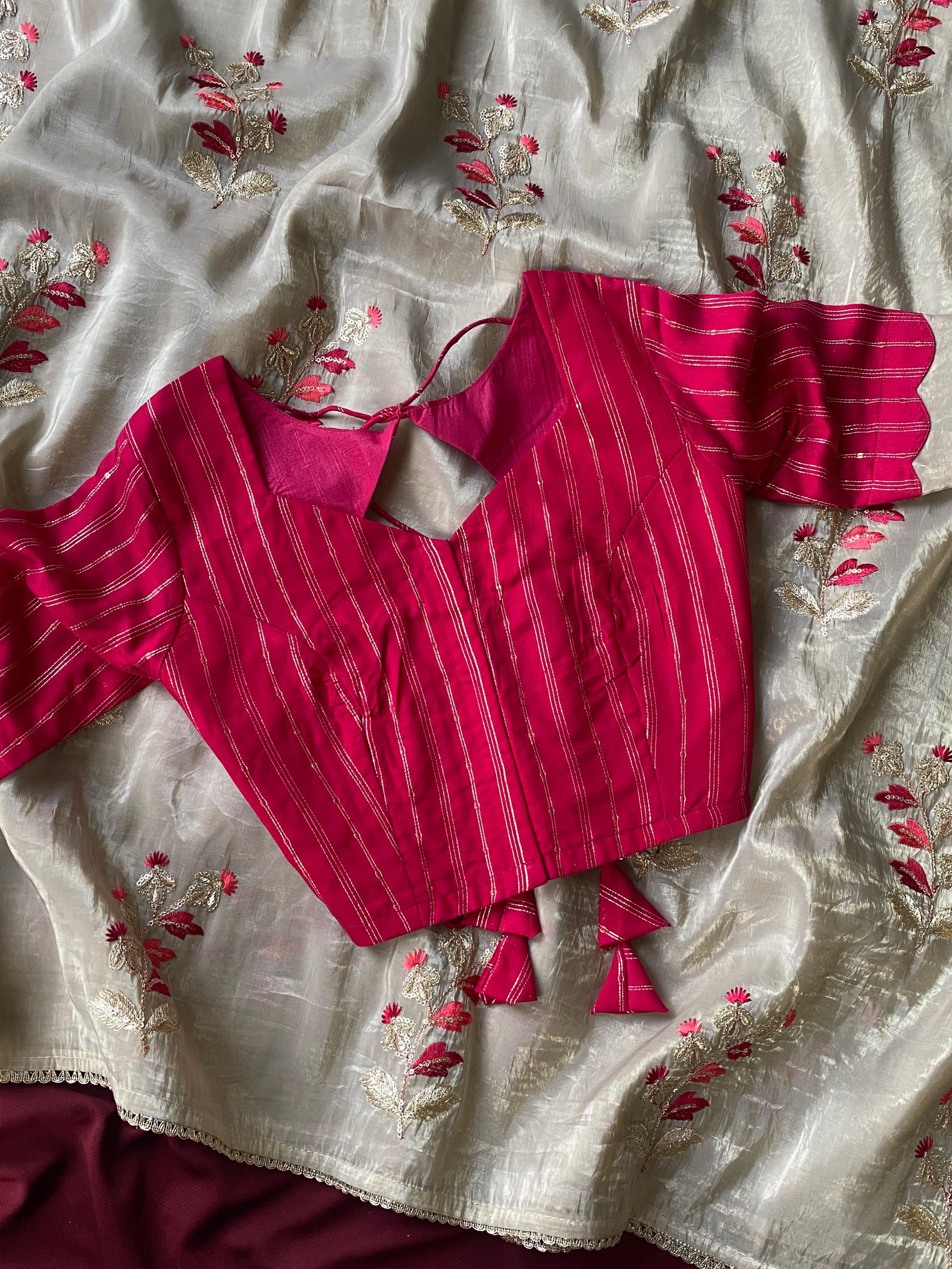 Pure soft glass tissue saree with beautiful embroided flowers all over saree with beautiful lace